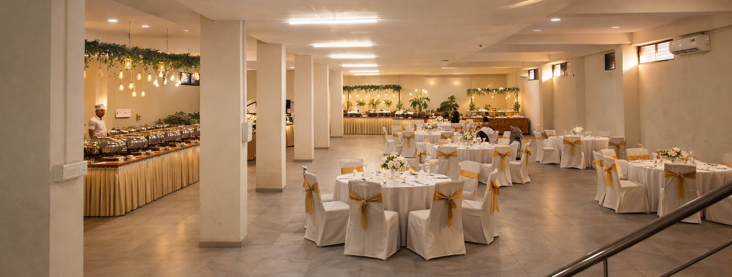 Our underground AC halls are perfect for weather-proof events and parallel functions. These spaces allow you to manage multiple ceremonies simultaneously without overlap or interference.